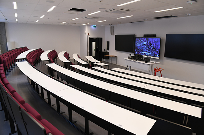 Use the drop down menu below to find information about room capacity, location, technical equipment in all our auditoriums and classrooms.