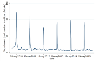 Figure 1 provides a concrete example of one of the schemes (cum-cum) in action. The figure displays the daily number of stocks on loan for BMW over time. As can be seen, lending spikes sharply every time BMW pays out a dividend. The reason is that foreign investors are lending their stocks to domestic banks, which are exempt from the DWT. |