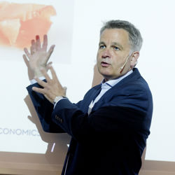 Den fjerde industrielle revolusjon vil treffe hardt, og etablerte virksomheter vil slite med å overleve. Lehmkuhlforeleser Frode Eilertsen advarte mot konsentrasjon av penger og makt.