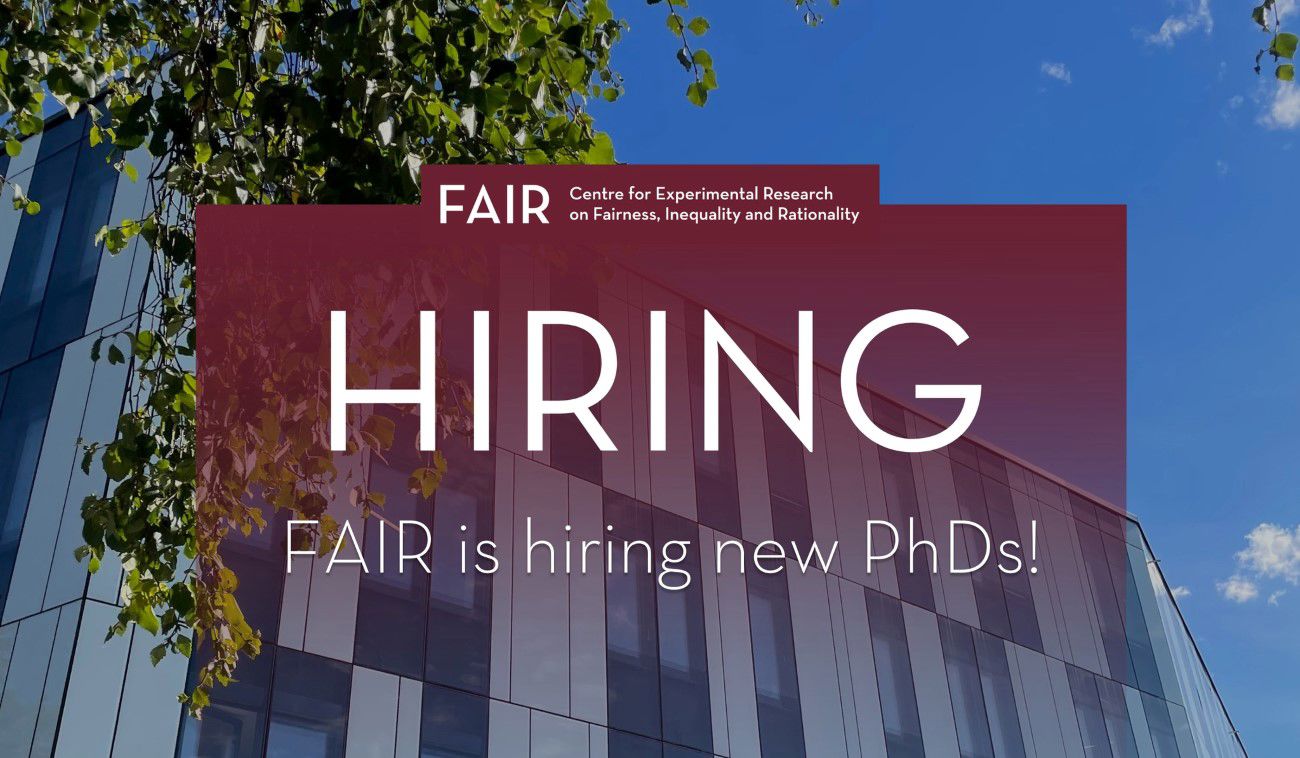 The Department of Economics also has a vacant position in a large interdisciplinary project, Freedom to Choose (FREE). The position is financed by the Research Council of Norway and hosted by The Centre for Experimental Research on Fairness, Inequality and Rationality (FAIR). The PhD position will have a primary basis in behavioral and experimental economics, but will also integrate insights and methods from our neighboring disciplines of social psychology and decision research.