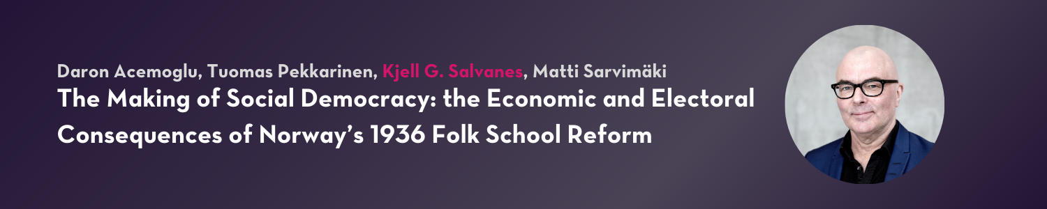 A new study by Kjell G. Salvanes, Daron Acemoglu, Tuomas Pekkarinen, and Matti Sarvimäki explores the long-term impact of Norway’s 1936 Folk School Reform. It finds that the reform boosted education, labor income, and lasting support for the Norwegian Labour Party, shaping economic mobility and electoral behavior.