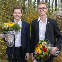 Hans Kristian Engmark og Aleksander Erstad er vinnarar av Lehmkuhlstipendet for masteroppgåve om korleis bønder kan bruke programmering til å planlegge produksjonen.