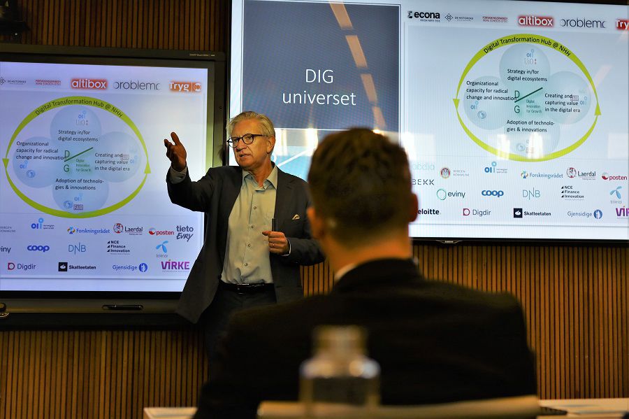 ‘An amazing day of dialogue, discussions and knowledge sharing between academia and our partners and members from business and government’, says Tor W. Andreassen, director of the research center Digital Innovation for Sustainable Growth.