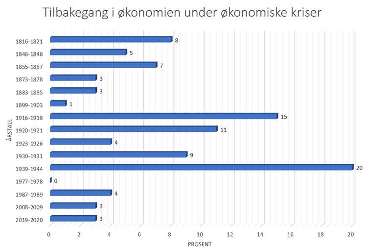 Økonomiske kriser oppstår ganske ofte. Dei kan få store ringverknader for næringslivet og samfunnet. Sidan Noreg vart ein sjølvstendig nasjon i 1814, har vi opplevd 15 større økonomiske kriser. Dei aller fleste av desse krisene har ramma store delar av verda. Sidan Noreg er eit lite land som er avhengig av internasjonal handel, er vi spesielt utsette for internasjonale kriser.